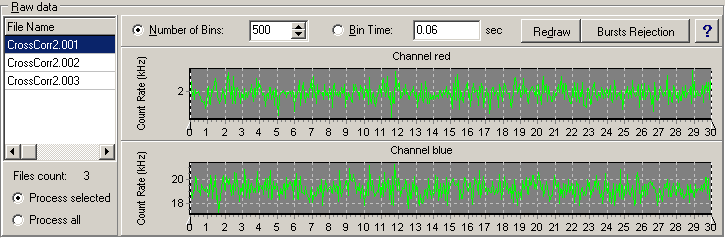 FRD (Flow Raw Data) is a set of simple dataformats like one column list of doubles representing photon arrival times. Users can save your own raw data (f.e. simulated) in FRD dataformat in order to use them in the FFS Data Processor. Raw data that can be processed by Raw Data Builder is a list of time events but not counts per bin, i.e. binned intensity is not the raw data, it is its characteristic.